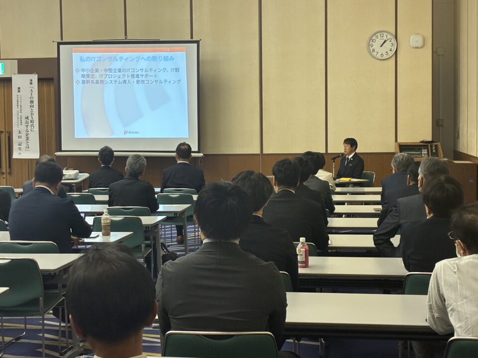 AIの最新動向と利用にあたっての注意点を情報提供しつつ、DX時代に企業が成長していくために、DX/ITプロジェクト推進において大切にしたい点について、生成AIの実演も取り入れながら、主に下記のコンテンツでお話させていただきました。