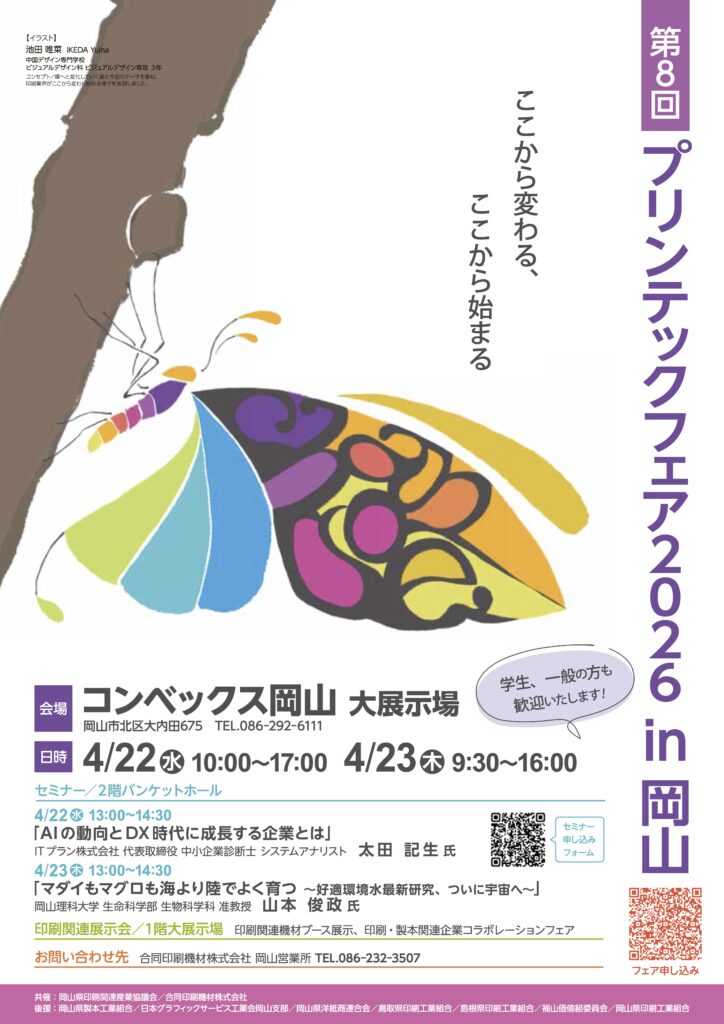 去る2026年4月22日に、「第8回プリンテックフェア2026 in 岡山」(後援:岡山県印刷工業組合様)にて、公開セミナーに登壇させていただきました。